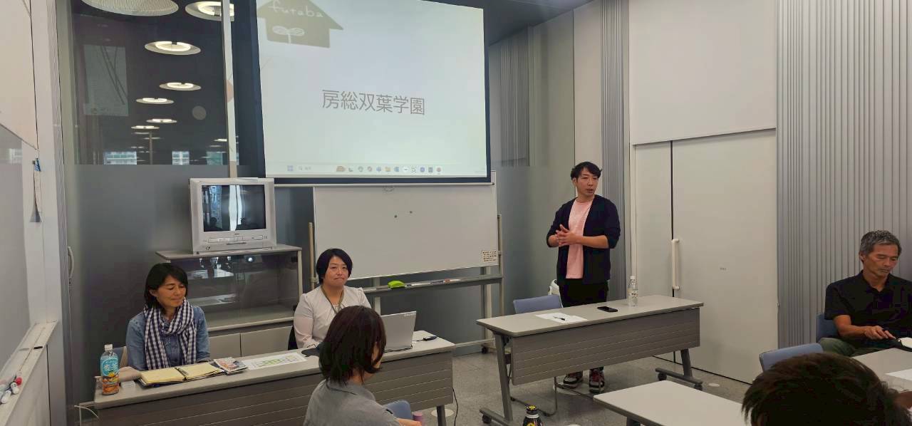 今回のメインスピーカーは「児童養護施設房総双葉学園」の職員で主任を務めておられる後藤弘実さんと、同じく房総双葉学園で里親支援専門相談員をされている田尻望さんです。お二人に、フォーラムの呼びかけ人の一人である「自立支援ホーム みんなのいえ」ホーム長の小倉淳さんが質問を投げかける形でお話は進みました。房総双葉学園は、御年68歳(設立68年)!、その中で30年務めておられる後藤さんから、学園の変遷や今の様子、そして田尻さんからは、最初勤めておられた幼稚園で房総双葉のお子さんを受け入れた当時の様子、など、とても興味深いお話を伺うことができました。